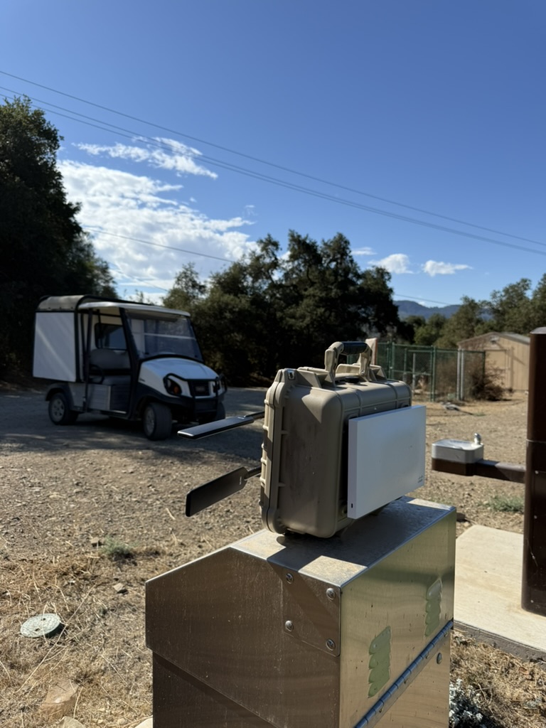 To evaluate coverage, Jerry and Jason connected a Meraki gateway (bridging P5G-to-Wi-Fi) to a portable power source and a golf cart, driving across the campus to measure signal strength and throughput. Even without the external antenna (which hadn’t arrived yet), results exceeded expectations—strong signal continuity and reliable connectivity across large areas.