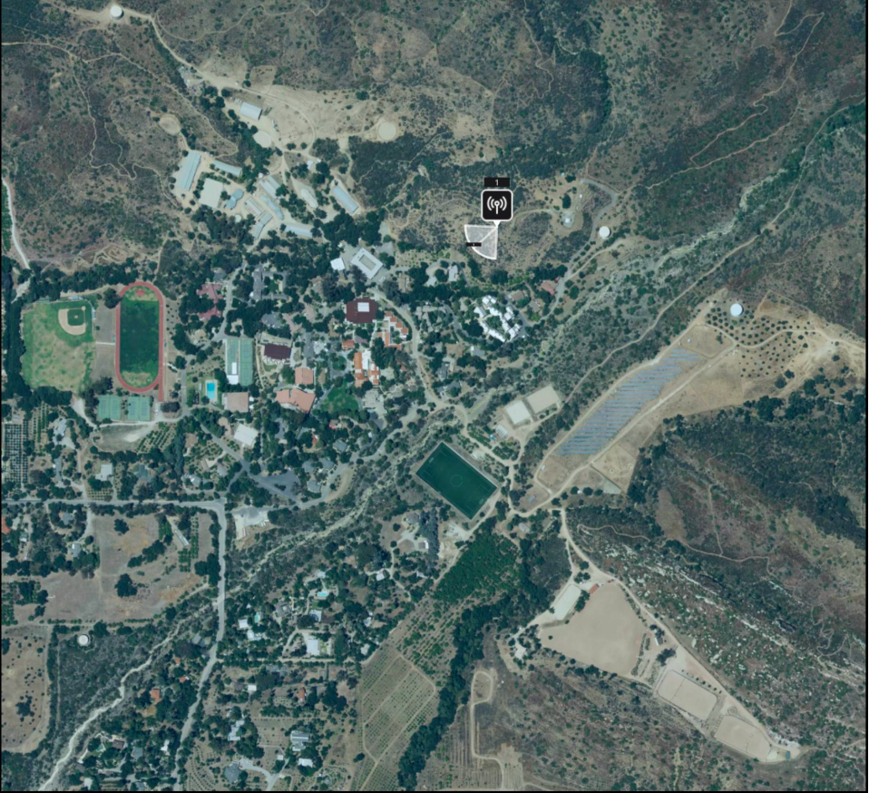 Working together, Ataya and TECLaunch built an outdoor RF coverage plan. They uploaded Thacher’s campus map, selected the Moso Networks 5GOD2 radio, and generated an RF propagation model. The analysis showed that a single 20-watt small cell could cover most of the campus, while two radios would ensure complete coverage behind buildings and natural obstacles.